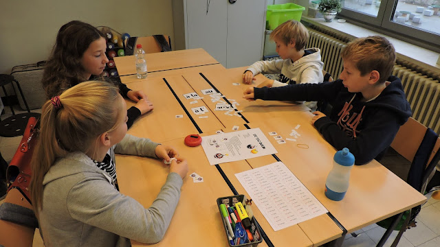 Vandaag waren er weer heel wat explosies te horen in de klas. We oefenden verder op het kleine woordje "à" in onze Franse les. Wist je trouwens dat de Fransen niet graag hebben dat je zegt "Je téléphone à le père de Daan"? Voor ons klinkt het logisch, niet? Zij horen liever "Je téléphone au père de Daan". Hierop maakten we oefeningen en speelden we ook een spel. Niet zo gemakkelijk, maar het lukt ondertussen al veel beter!!